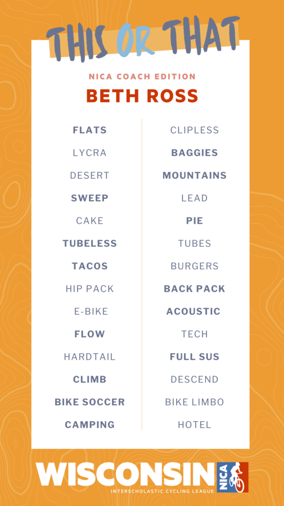 I love riding and I love riding with other people. When I heard about the NICA team here in Madison, WI, I knew straight away that I wanted to be involved. We have 2 daughters who we started riding with when they were 6 or 7 so having them join the team (and my husband and I coach) seemed like a perfect fit for our family. I keep coaching because I love the culture of our team, the fun, the camaraderie and the joy I get from watching our riders gain confidence when they master skills, have a blast riding with their friends, making new friends and being part of the mountain bike community. The best part about coaching with NICA is the community!